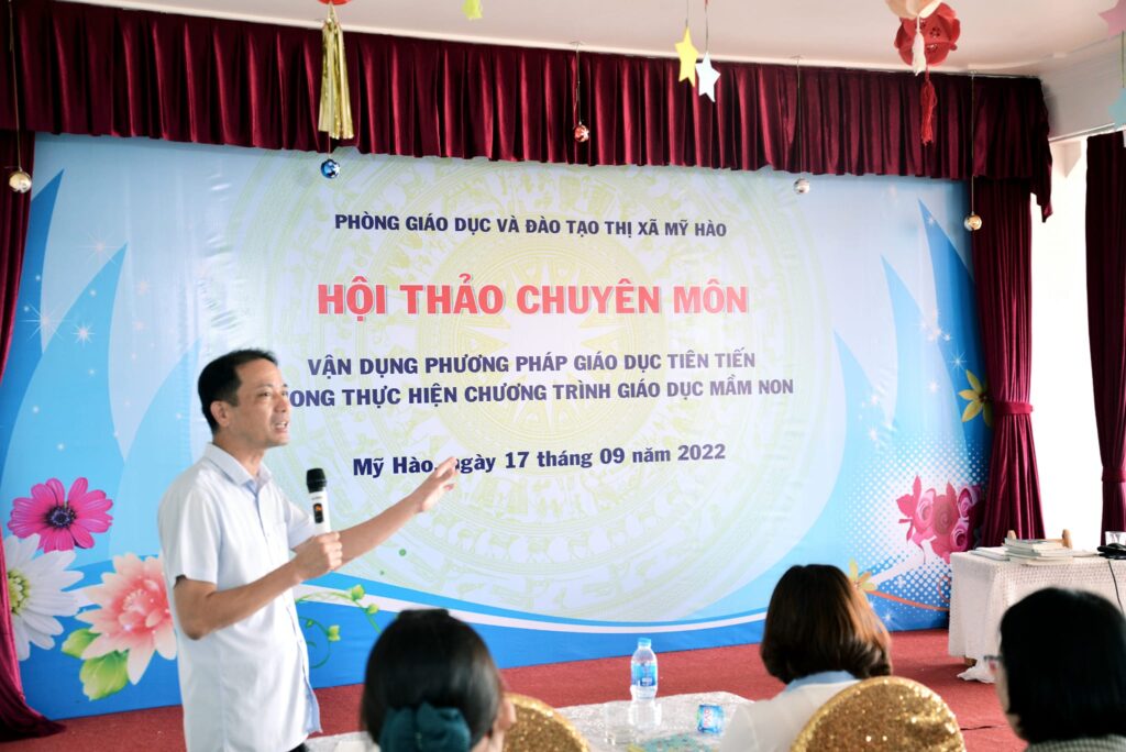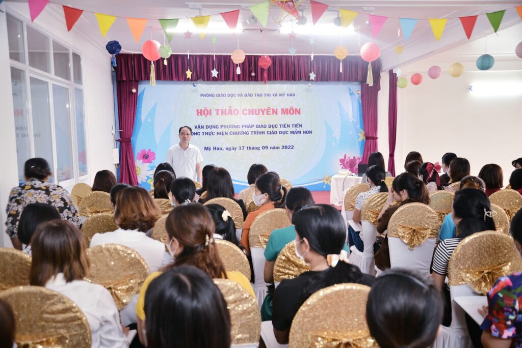 Vào ngày 17 tháng 9 năm 2022, hội thảo chuyên môn các trường mầm non khu vực Thị Xã Mỹ Hào với chuyên đề: “Vận dụng phương pháp giáo dục tiên tiến trong thực hiện chương trình giáo dục mầm non” đã được tổ chức tại Mầm non Happy Montessori. Ban lãnh đạo Phòng Giáo dục và Đào tạo Thị xã Mỹ Hào, cán bộ giáo viên các trường và các cơ sở mầm non trên địa bàn Thị xã Mỹ Hào đã tham gia hội Thảo với tinh thần nhiệt huyết cao và góp phần cho thành công của buổi hội thảo.